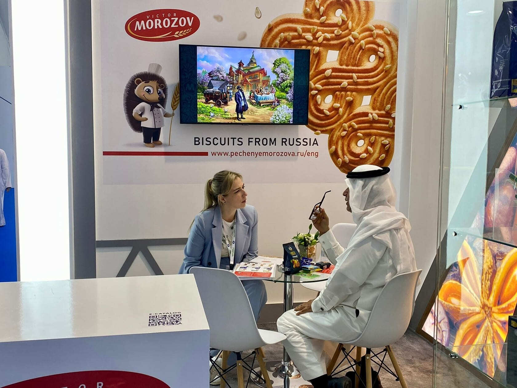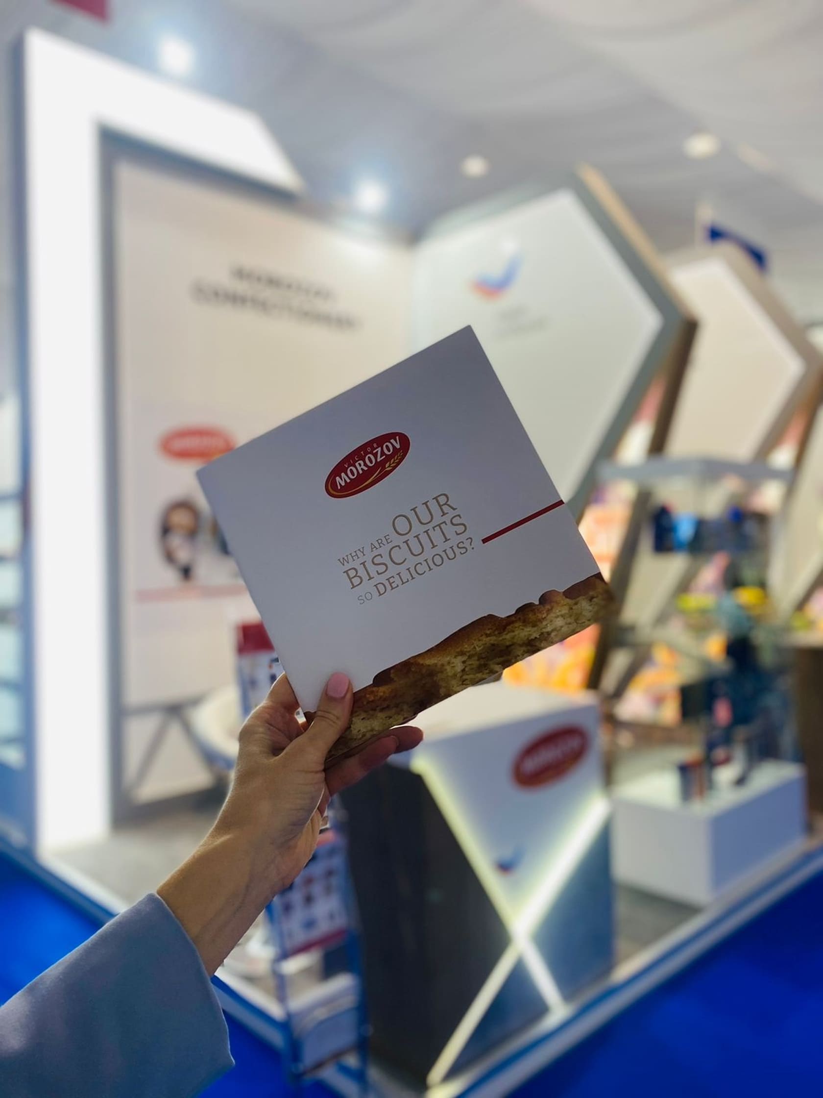 В рамках выставки мы презентовали нашу главную новинку 2022 года – печенье-сэндвич с ванильной начинкой, также была представлена продукция международных брендов Victor Morozov и Pekarro.