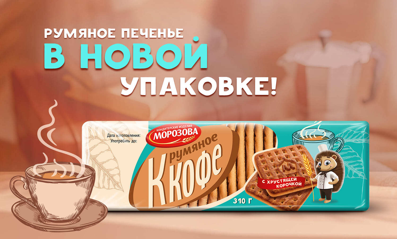 Представляем обновленную упаковку румяного печенья «К кофе», которая имеет новый запоминающийся дизайн, а также измененный вес – он увеличился с 210 до 310 грамм. Значит, больше любимого печенья в одной пачке.